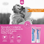 - Stomodine F è un gel specializzato per l'igiene orale per gatti e cani, con una formula che promuove un miglioramento della salute orale e può ridurre il rischio di problemi dentali. Consigliato dai veterinari in tutto il paese.